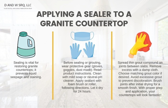 Applying a sealer is an essential step in restoring your granite countertops. The sealer will provide a protective layer that prevents moisture and other liquids from seeping into the porous surface, thereby preventing staining.